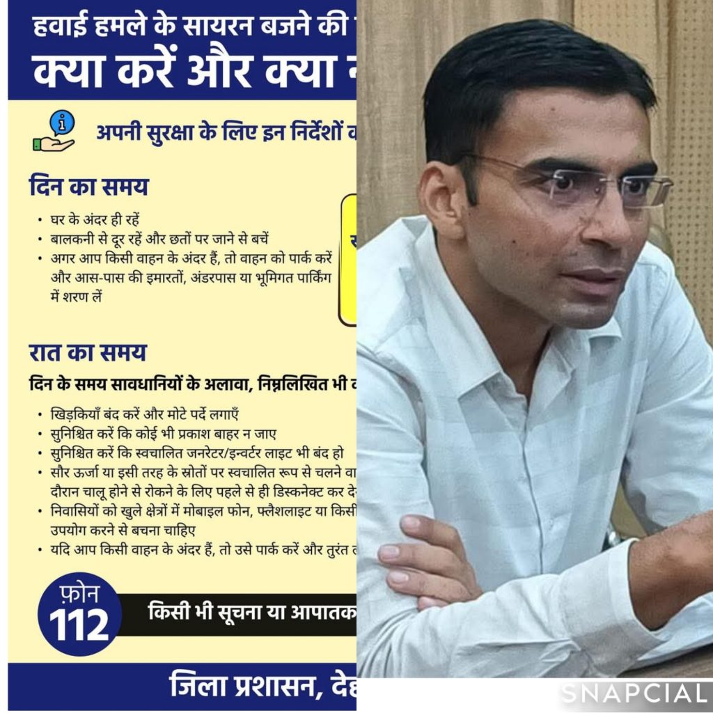वर्तमान में उत्पन्न प्रतिकूल परिस्थितियों को देखते हुए देहरादून के जिलाधिकारी सविन बंसल द्वारा सोशल मीडिया के माध्यम से जो अपील साझा की गई है, वह न केवल प्रशासनिक चेतावनी है, बल्कि जनमानस के प्रति उनकी गहरी संवेदनशीलता और ज़िम्मेदारी को भी प्रकट करती है। “हवाई हमले के सायरन बजने की स्थिति में कृपया जिला प्रशासन द्वारा जारी DO’S AND DON’TS का पालन करें”—इस छोटे से वाक्य में बड़ा संदेश छिपा है। यह एक गंभीर संकेत है कि परिस्थितियाँ सामान्य नहीं हैं और ऐसे समय में प्रत्येक नागरिक की भूमिका अत्यंत महत्वपूर्ण हो जाती है।