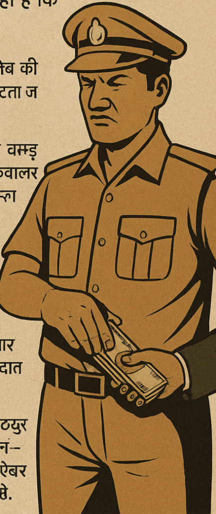 हर वर्दी न्याय की नहीं होती – कुछ जेब की भी होती है। और अब तो ये फर्क भी मिटता जा रहा है कि वर्दी में अफसर है या दलाल। जिस दिन एक चौकी प्रभारी एक लाख की रिश्वत लेते रंगे हाथ पकड़ा गया, उस दिन हड़कंप तो मचा, मगर कोई चौंका नहीं — क्योंकि अब ये खबर नहीं, आदत बन चुकी है।