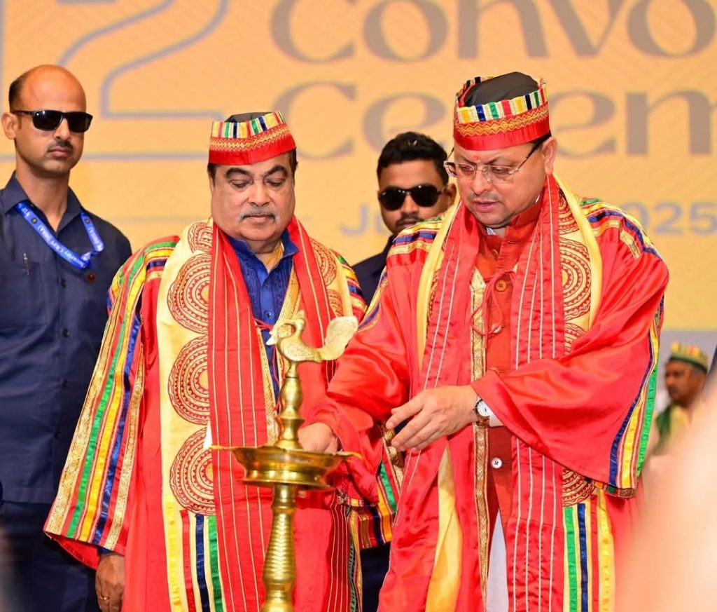 “ग्राफिक एरा डीम्ड यूनिवर्सिटी के दीक्षांत समारोह में केंद्रीय मंत्री नितिन गडकरी ने विद्यार्थियों को उपाधियां और पदक प्रदान किए”