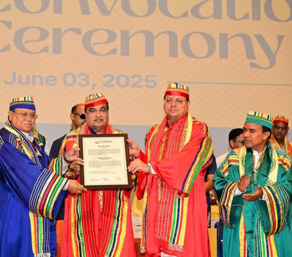– *डॉक्टरेट ऑफ साइंस की मानद उपाधि*: ग्राफिक एरा डीम्ड यूनिवर्सिटी ने केंद्रीय मंत्री नितिन गडकरी को डॉक्टरेट ऑफ साइंस की मानद उपाधि से सम्मानित किया।