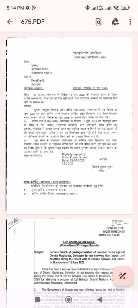 12 जून 2025 — देहरादून में लोकसभा अध्यक्ष ओम बिरला का दौरा, प्रोटोकॉल के मुताबिक़ सारी व्यवस्थाएँ चाक-चौबंद, अधिकारी तैनात, सुरक्षा मुकम्मल। लेकिन बस एक कॉल, जो उनके स्टाफ ने डीएम ऑफिस में किया, उस पर ‘तुरंत’ जवाब नहीं मिला — और यहीं से शुरू हो गया राजनीतिक ईगो का महासंग्राम।