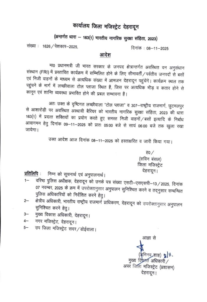 उत्तराखंड रजत जयंती के मौके पर जब प्रधानमंत्री नरेंद्र मोदी देहरादून पहुंचे, तब सबको यही डर था कि राजधानी सड़कों से ज्यादा ‘जाम’ के लिए खबरों में न आ जाए। लेकिन नहीं — इस बार प्रशासन ने ट्रैफिक की नब्ज़ पकड़ ली। डीएम बंसल ने आदेश दिया कि लच्छीवाला टोल प्लाजा और एक्सप्रेसवे को सुबह 5 बजे से शाम 6 बजे तक निशुल्क रखा जाएगा। यानी बिना रुके, बिना टिके, वाहनों को खुला रास्ता — और शहर को खुली हवा।