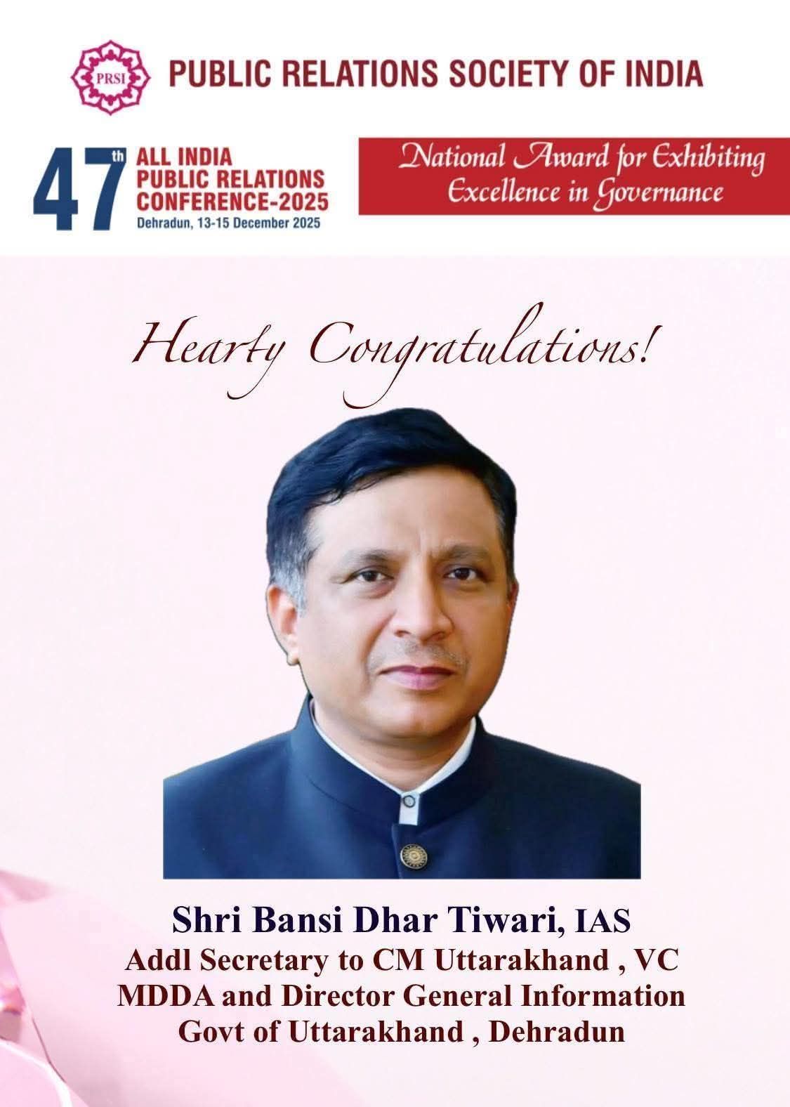 IAS बंसीधर तिवारी को राष्ट्रीय शासन उत्कृष्टता पुरस्कार, प्रभावी प्रशासनिक कार्यशैली की राष्ट्रीय स्तर पर सराहना December 12, 2025 No Comments