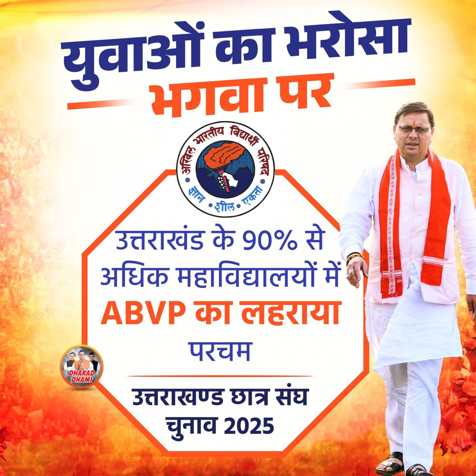 छात्रसंघ चुनाव में धामी की युवा सोच पर युवाओं की मुहर: ABVP ने सूपड़ा साफ किया, उत्तराखंड में भगवा ही भगवा September 27, 2025 No Comments
